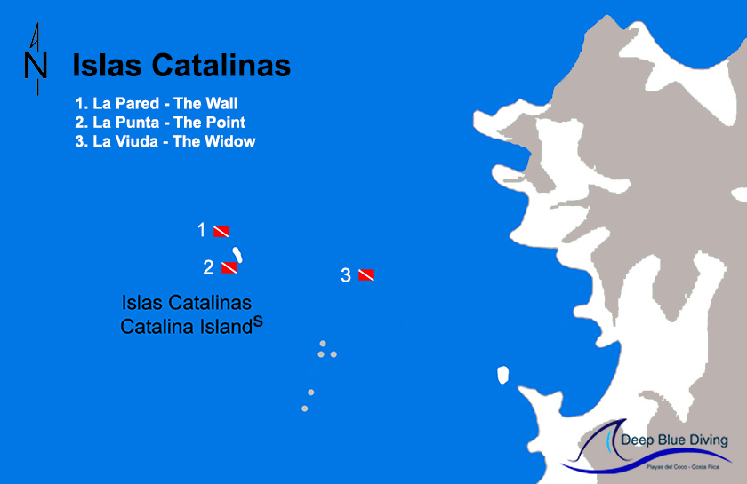 Ubicadas aproximadamente a 20 millas (30 km) al sur de Playas del Coco, las islas se alcanzan en menos de una hora a bordo de nuestras embarcaciones de buceo. Estos sitios son conocidos por sus condiciones dinámicas, incluyendo oleaje, corrientes más fuertes y mar abierto, lo que los hace ideales para buzos más experimentados en busca de una verdadera aventura.